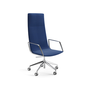 Η Elinor με χαμηλή πλάτη είναι μια εκτελεστική πολυθρόνα με χαμηλότερη πλάτη, σχεδιασμένη να προσαρμόζεται ομαλά τόσο σε αίθουσες συσκέψεων όσο και σε εκτελεστικά γραφεία και οικιστικούς χώρους. Η βάση ρυθμιζόμενου ύψους από χυτό αλουμίνιο χαρακτηρίζεται από αισθητικά ευχάριστες, καμπύλες γραμμές. Ένας μηχανισμός συγχρονισμένης κλίσης ενεργοποιούμενος από το βάρος, ενσωματωμένος στο επενδεδυμένο κάθισμα, επιτρέπει την αυτόματη ρύθμιση της κλίσης ανάλογα με το βάρος του χρήστη, διασφαλίζοντας ότι η πλάτη διατηρείται στην πιο άνετη θέση. Άλλα δυνατά σημεία της Elinor με χαμηλή πλάτη είναι η άνεση και η αίσθηση αγκαλιάς, χάρη στην πολυουρεθάνη τόσο στο κάθισμα όσο και στην πλάτη. Ένα ελαφρύ, λεπτό και ισχυρό μπράτσο από χυτό αλουμίνιο καθορίζει τη βάση της πλάτης με τη ρευστή γραμμή του.