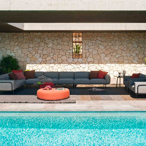 Κάθε στοιχείο είναι κατασκευασμένο από τικ, διαθέσιμο σε φυσικό ή weathered φινίρισμα. Περιλαμβάνει στοιχεία χωρίς πλάτη, γωνιακά και βαθιά για πολλαπλές διαμορφώσεις. Οι υπαίθριες μαξιλάρες έχουν αφαιρούμενα αδιάβροχα υφάσματα και παρέχουν απόλυτη άνεση.