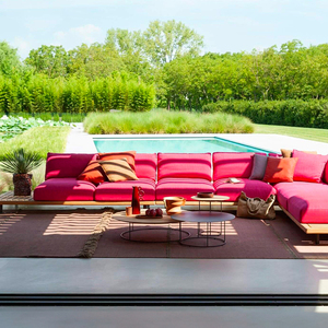 Τα αρθρωτά καναπέδες, lounge πολυθρόνες, ξαπλώστρες και τραπέζια με καρέκλες εξωτερικού χώρου εκφράζουν έναν εκλεπτυσμένο διάλογο μεταξύ στιβαρότητας και ελαφρότητας. Οι κατασκευές από βαμμένο αλουμίνιο και τα αποσπώμενα μαξιλάρια από υφάσματα υψηλής απόδοσης προσφέρουν κομψότητα και ανθεκτικότητα.