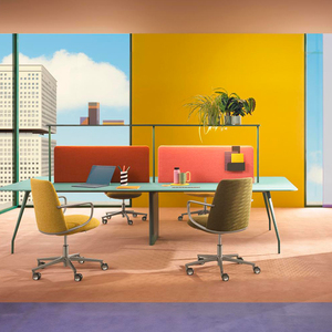 Στο πλαίσιο της συνεχούς εξέλιξης, ξεχωρίζουν οι ελαφρές λύσεις συνεδριάσεων και οι ορθογώνιοι ανεξάρτητοι σταθμοί εργασίας, εφαρμόζοντας έναν οριζόντιο και άκρως συνεργατικό οργανισμό. Η επιφάνεια εργασίας, για εργασία και κοινή χρήση. Οι σταθμοί εργασίας είναι σαν πλατφόρμες χωρισμένες σε δύο κύριες περιοχές: κεντρική περιοχή για συγκεντρωμένη εργασία και πλάγια για μικρές συναντήσεις και κοινή χρήση, επιτρέποντας ατομικές και συλλογικές δραστηριότητες. Στις ημι-εξελιγμένες και εξελιγμένες εκδόσεις σε λάκα, η άκρη της επιφάνειας εργασίας είναι λοξοτμημένη για να εξασφαλίσει σωστή υποστήριξη του πήχη και να βελτιώσει την άνεση.
